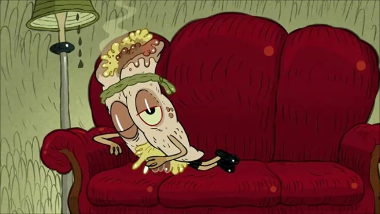 The Breakfast Burrito is very lazy. For example, in "The Chronicles of Cutesachusetts", Banana simply asked him to put away a jar of peanut butter, only for him to immediately sit on his couch and fall asleep.